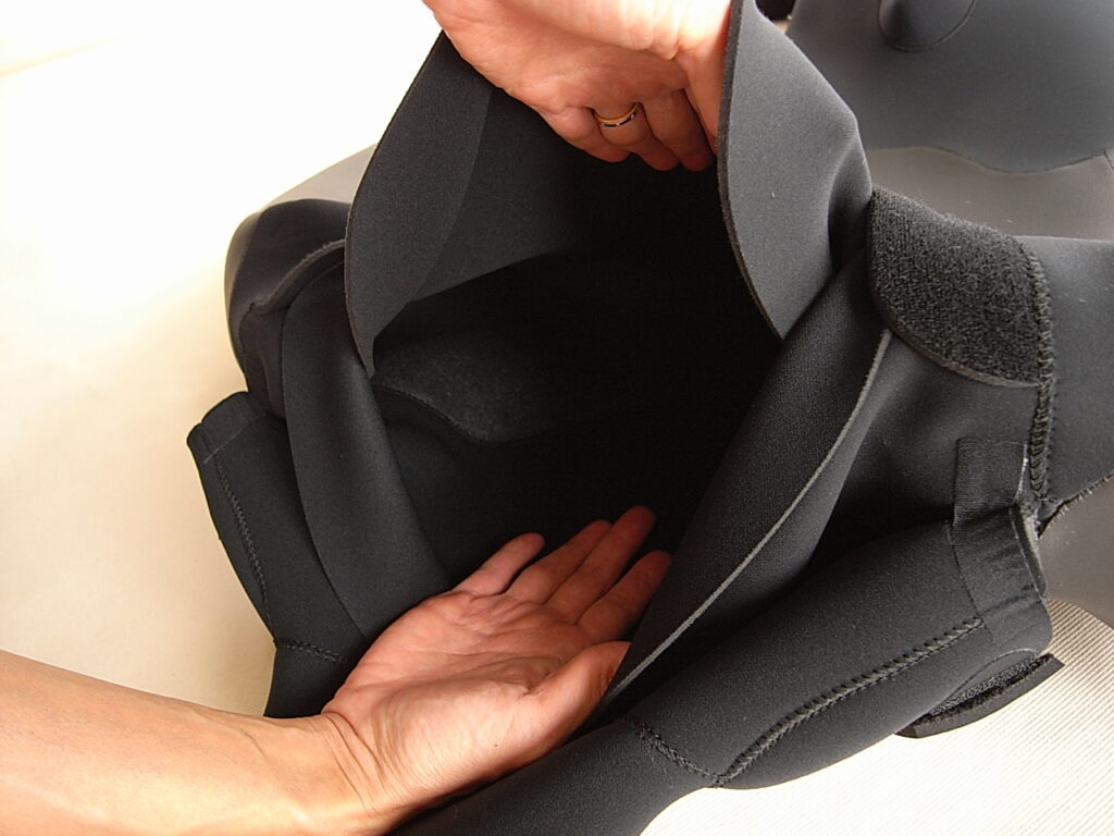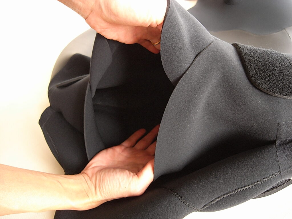 高さ調整のできるハイネックは頸椎を暖め、浸水口も埋める役割です。