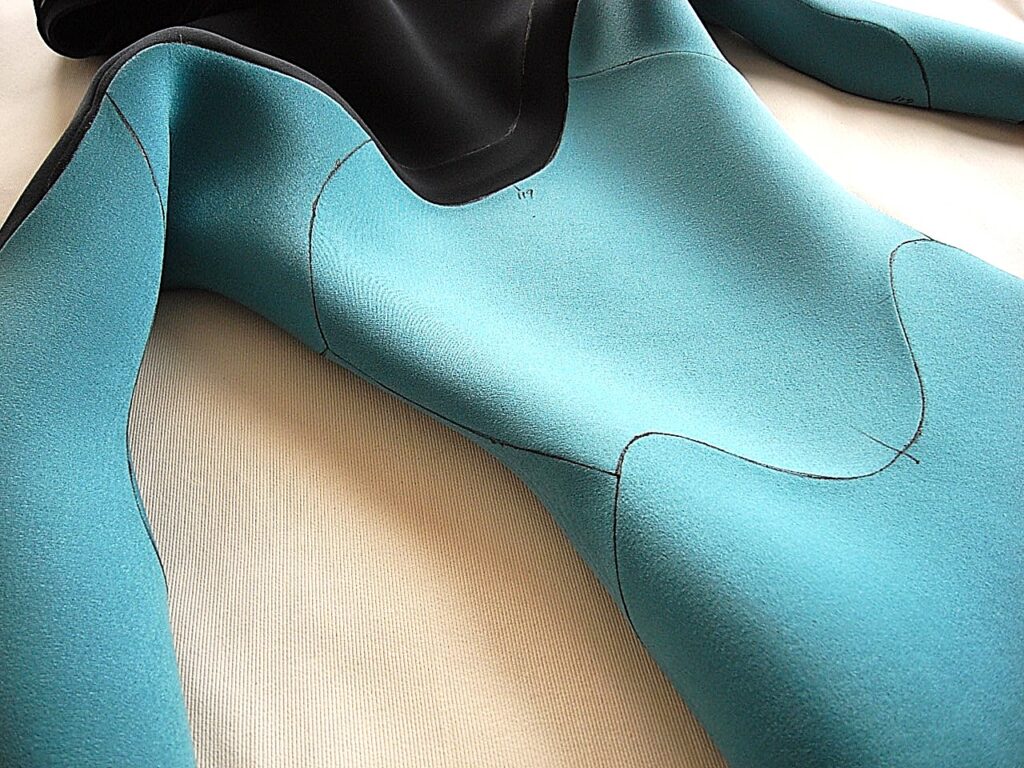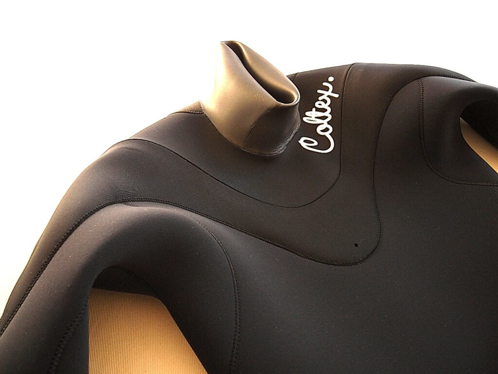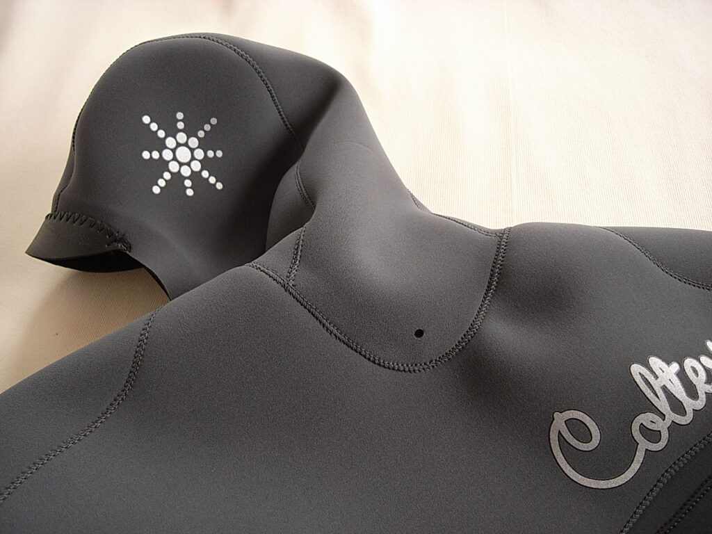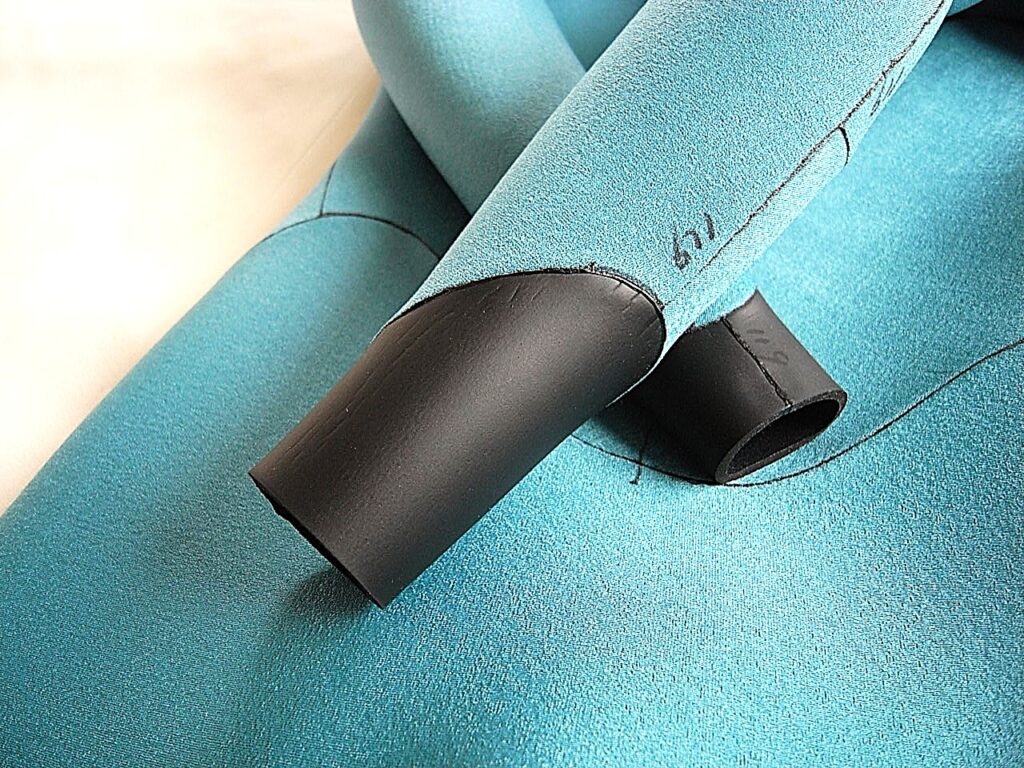 ラバーセミドライと同様、折り返しのドライネック&足首のウェットブロックスキンは標準装備。